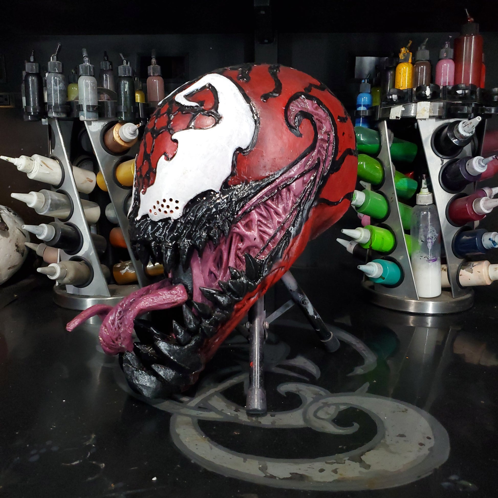 Welcome to REevilLution FX. The arsenal to your imagination. We bring you The Reanimator. An original design sculpted, molded and painted by yours truly. MR Grey. This Mask is a size XL. Or a 24 inch/ 62 cm circumference, or a 7 5/8 in hat size. These are made with the best latex in the industry. Monsters Maker liquid latex RD 407. Distributed by AFA supplies. Molded in hydrocal B11 from Aardvark Clay and Supplies. Sculpted in plastelina costumed in house.